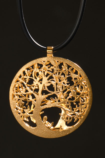 DM 50mm, Silber 925/000, Gold plattiert, Kette: Kautschukband 45 cm
